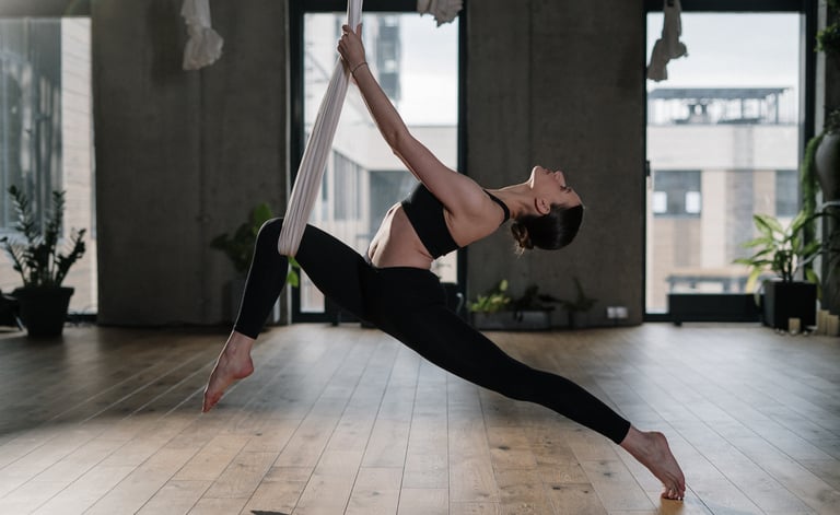 Air yoga is an interdisciplinary workout that combines the flexibility and technique of regular yoga with the strength building of hanging. Whether you’ve tried air yoga before or are a total beginner, you’re welcome in our classes.